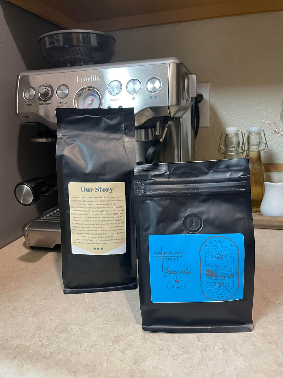 We are Bianchi Coffee Co.! Locally roasted in Sparks, NV, we are proud to offer various roasts and flavors to meet everyone's coffee preferences. You can brew in the comfort of your own home with any of our signature blends. Whether you like the convenience of ground beans or you like to dial in the grind size, we can accommodate! Built on a business model to open a mobile coffee trailer, we have hit a few bumps in the road. Despite our trials, we are still underway to open our mobile coffee trailer for future events! Follow us on our bold adventure to be in the loop of any updates! Thank you for being a part of our journey!